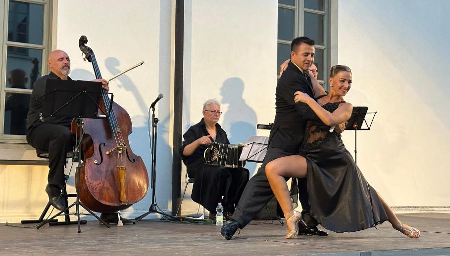 In luglio, con “ArteTango” il pubblico ha potuto ammirare l’esibizione passionale ed elegante di tango di alcuni maestri ballerini, mentre con “Arie per aria” soprani, baritoni, tenori e pianoforte hanno interpretato brani di opere liriche introdotte da gag e divertentissime battute musicali. La conclusione delle serate alla Corte Delmati ha visto la presenza del duo Bellani con un concerto per violino e pianoforte.